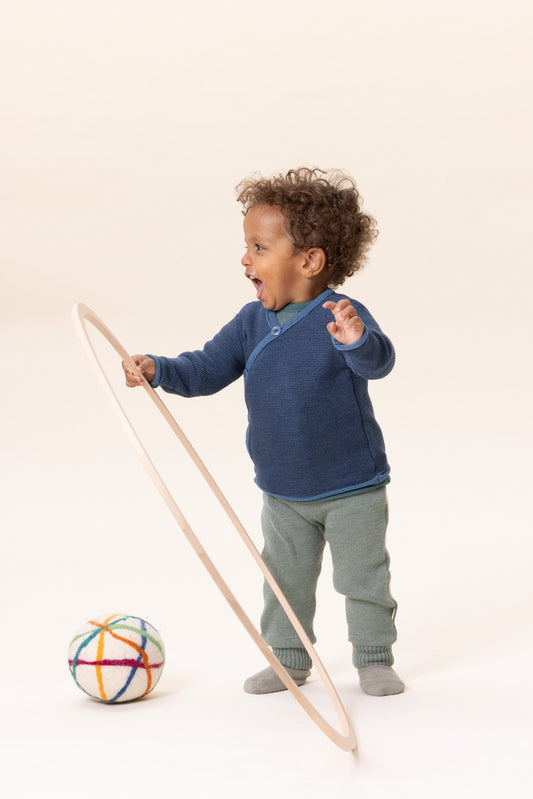 Letar du efter en stickad kofta eller en tröja till din baby? Här hittar du härliga, mysiga och färgglada koftor och tröjor för både kalla och varma dagar. Naturligtvis är alla gjorda i ekologiskt certifierad ull eller bomull, garanterat giftfria.