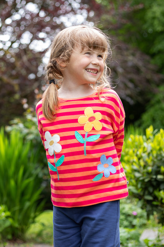 Långärmad t-shirt blomapplikationer