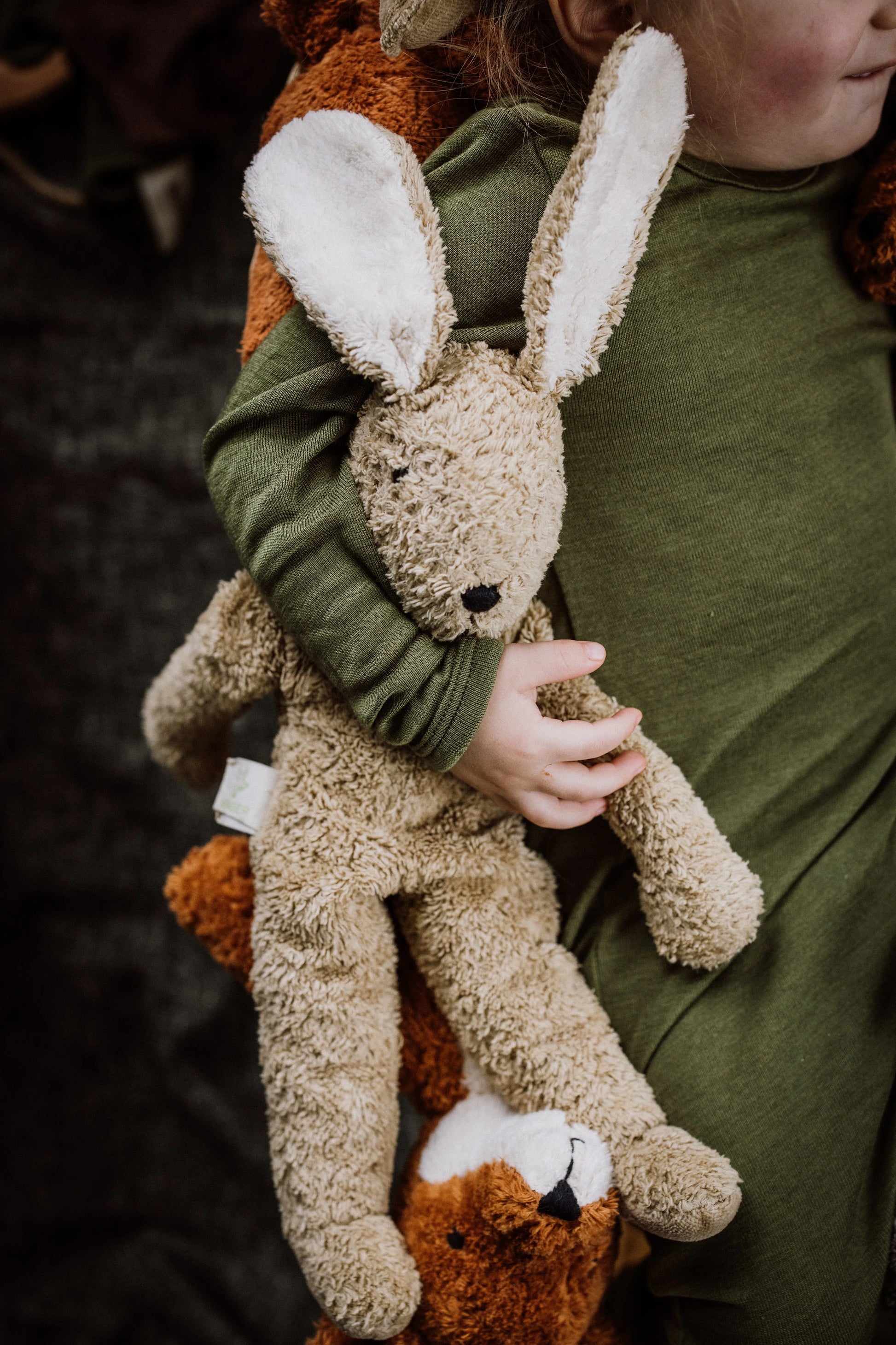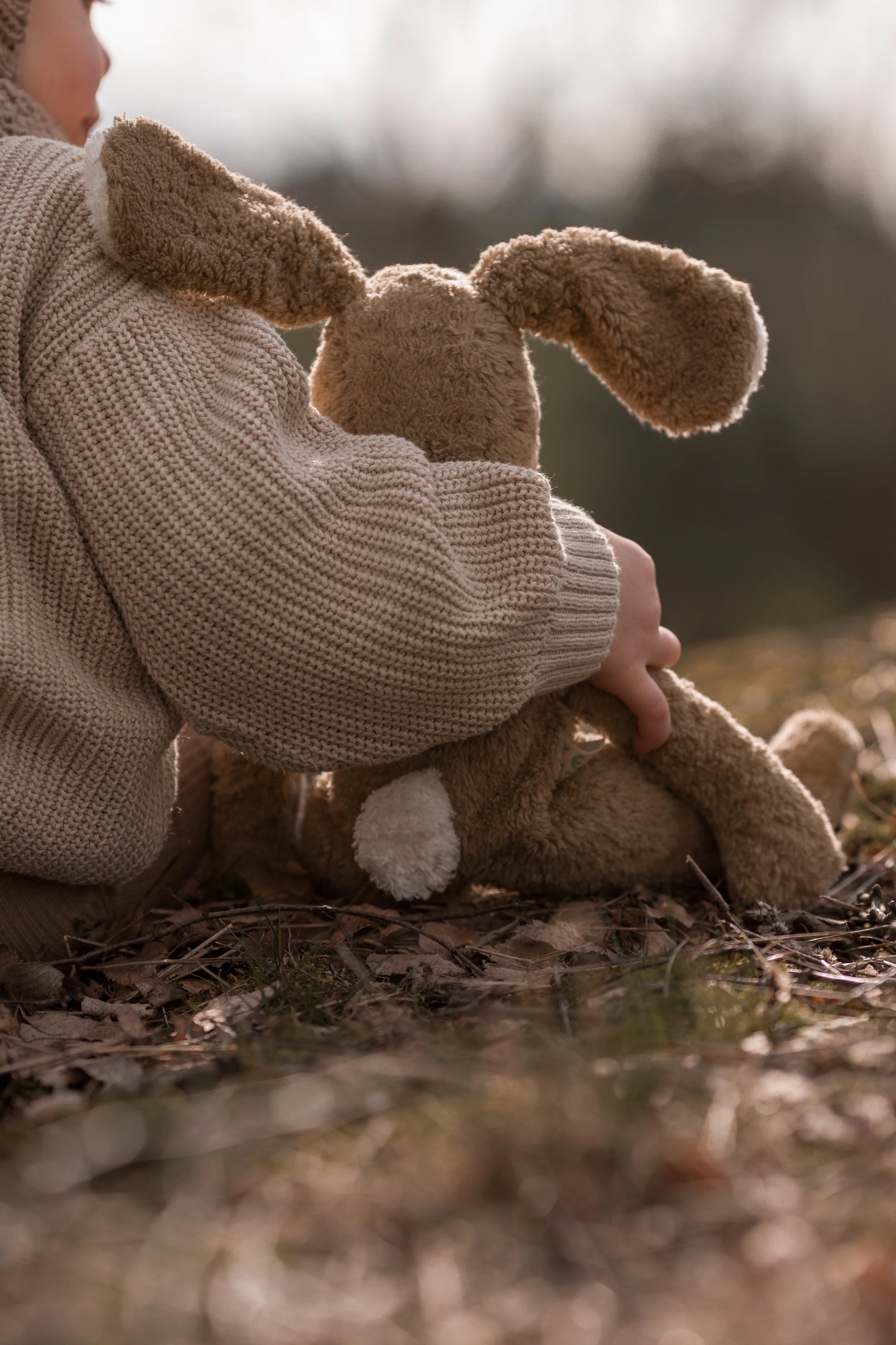 Denna kanin är handgjord i Lettland av yttertyg i 100 % ekologisk bomull och stoppning av ekologisk ull från Tyskland – producerad med omtanke om både människor och miljö och ett tryggt val för ditt barn eftersom GOTS-certifieringen säkerställer att den inte innehåller några skadliga kemikalier.