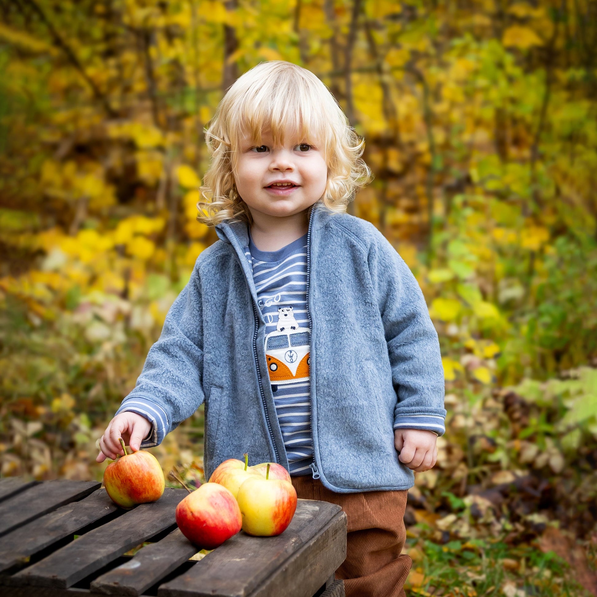 Blågrå fleecejacka för barn i underbart mjuk ekologisk bomullsfleeceblandning. Ett bättre och mer hållbart alternativ än ren syntetfleece. Jackan är helfodrad i blå- och vitrandig ekologisk bomullstrikå, vilket ger den en mycket behaglig känsla. Blixtlås fram och två fickor med blixtlås. Raglanärmar och ståkrage som värmer skönt runt halsen.