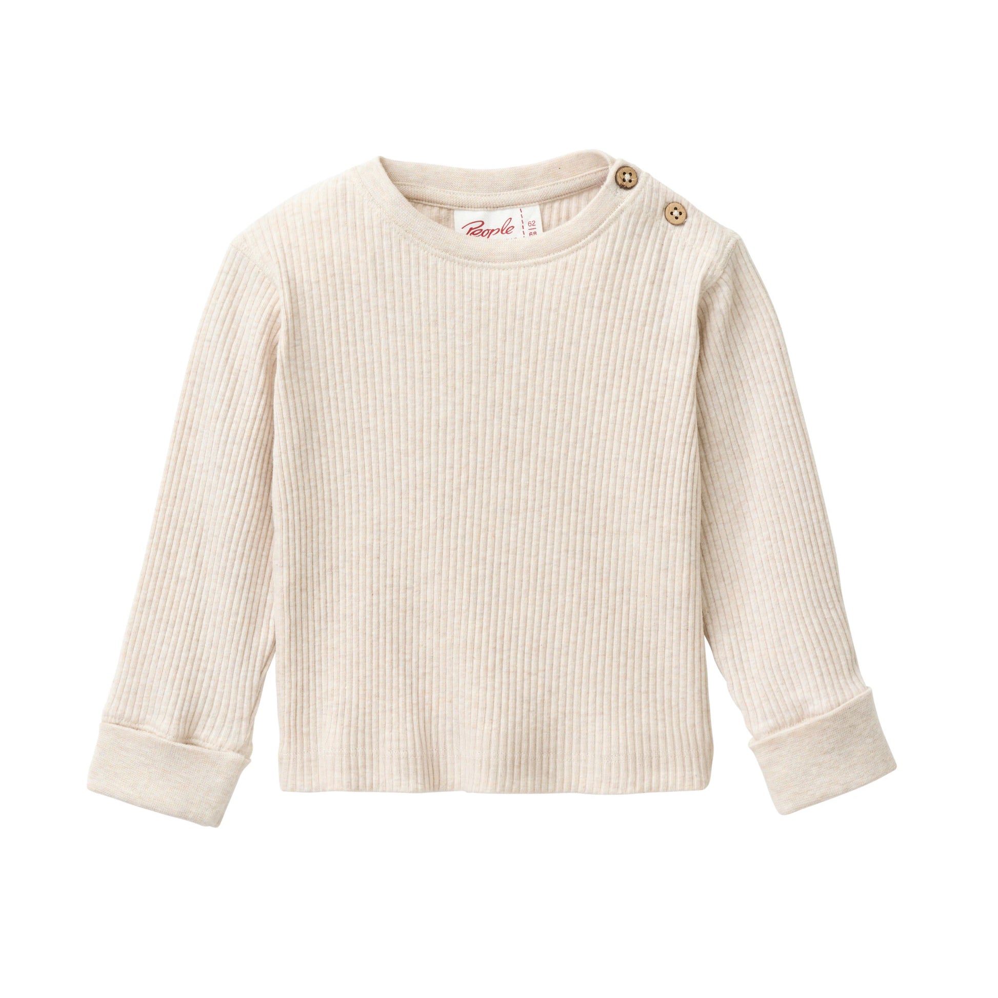 Långärmad t-shirt i härligt mjukt ribbat bomullstyg. Ett riktigt bra basplagg med nedvikbara muddar som gör att plagget kan användas lite längre och knappar av kokosnöt på ena axeln som underlättar på- och avklädning.
