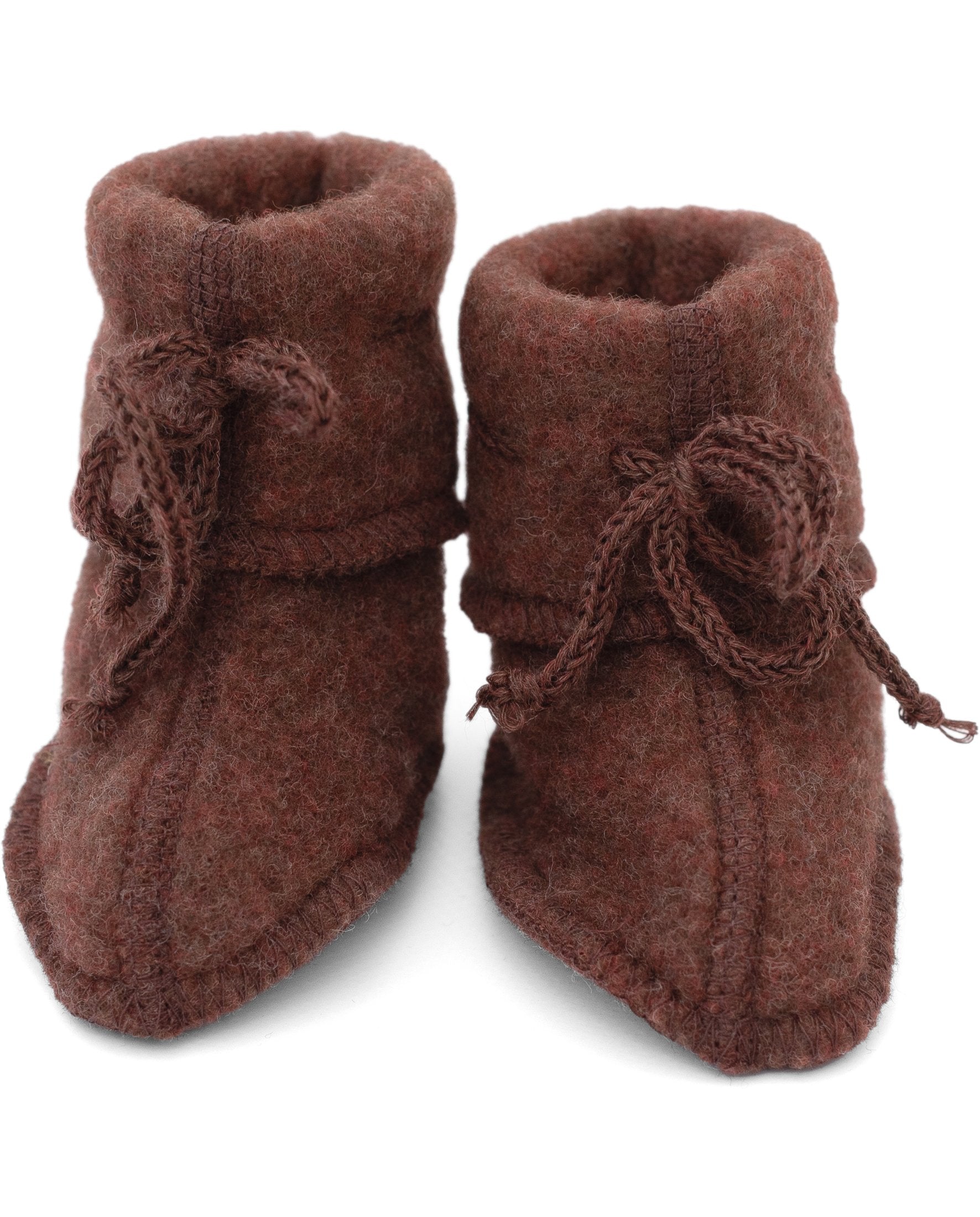 Supermjuka och värmande tossor till de allra minsta i ljuvlig ullfleece. Med knytband för att sitta bra på de små fötterna. Nyfödda har ofta svårt att hålla värmen i fötterna och ett par ylletossor kan vara sköna både inomhus och utomhus i vagnen. En fin present till en nyfödd bebis! Tillverkade i Tyskland i 100 % ekologisk ull.