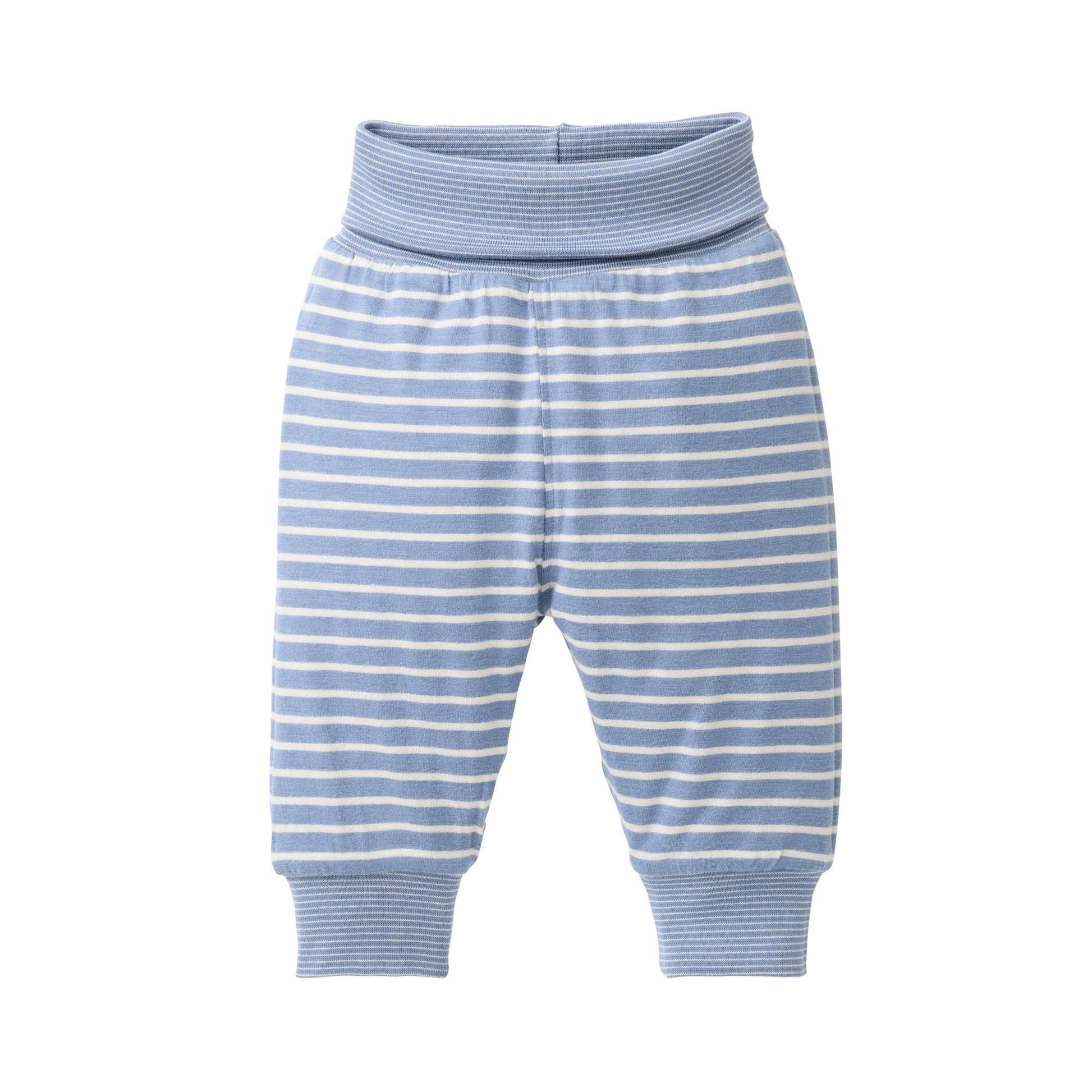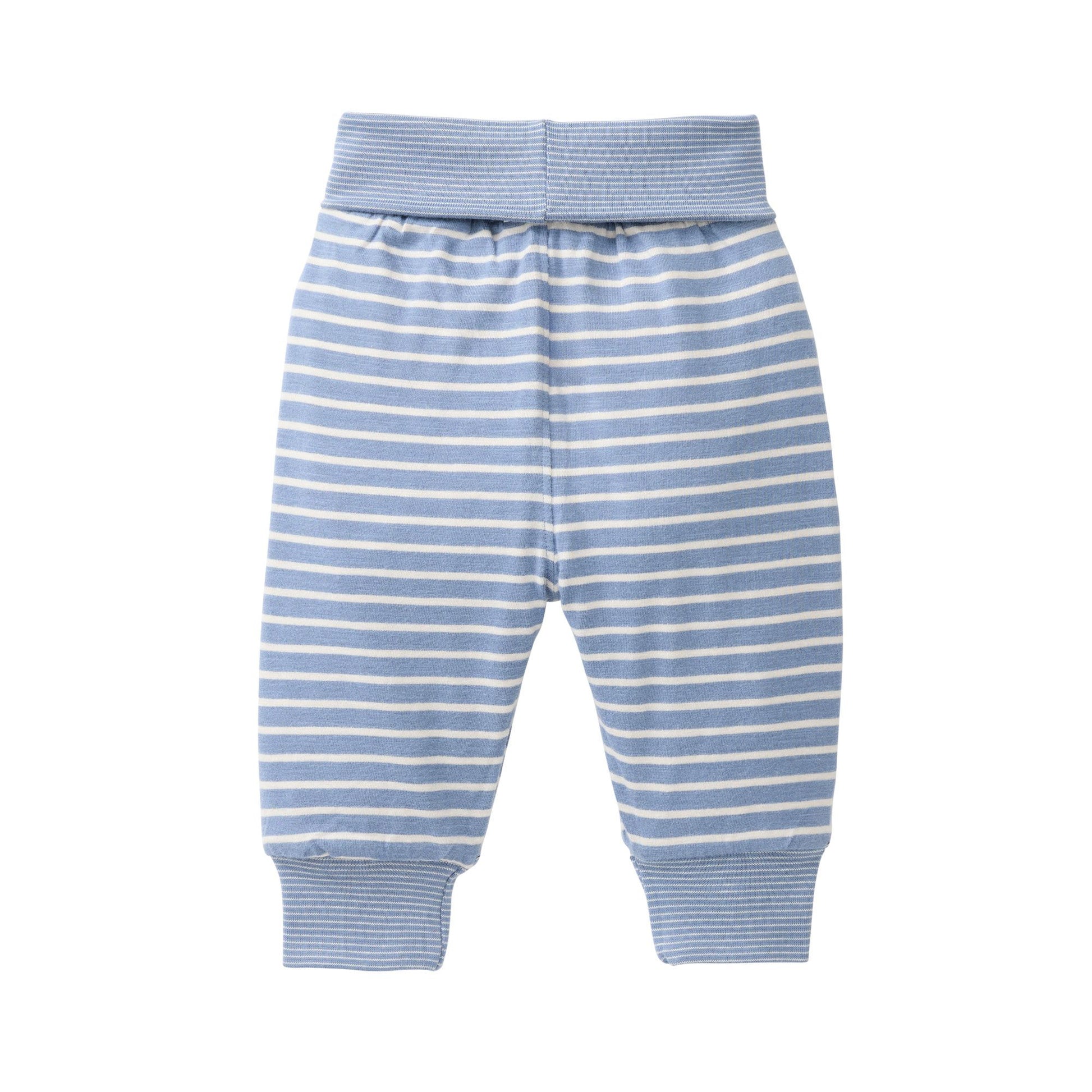 Smarta babybyxor som är vändbara så att man får två byxor i ett och lättare att variera bebisgarderoben! Den ena sidan har tryck med söta skogsdjur och den andra sidan är blårandig. Byxorna är gjorda i mjuk och skön ekologisk bomullstrikå och har en nedvikbar mudd i midjan, ett bekvämt plagg för de minsta!